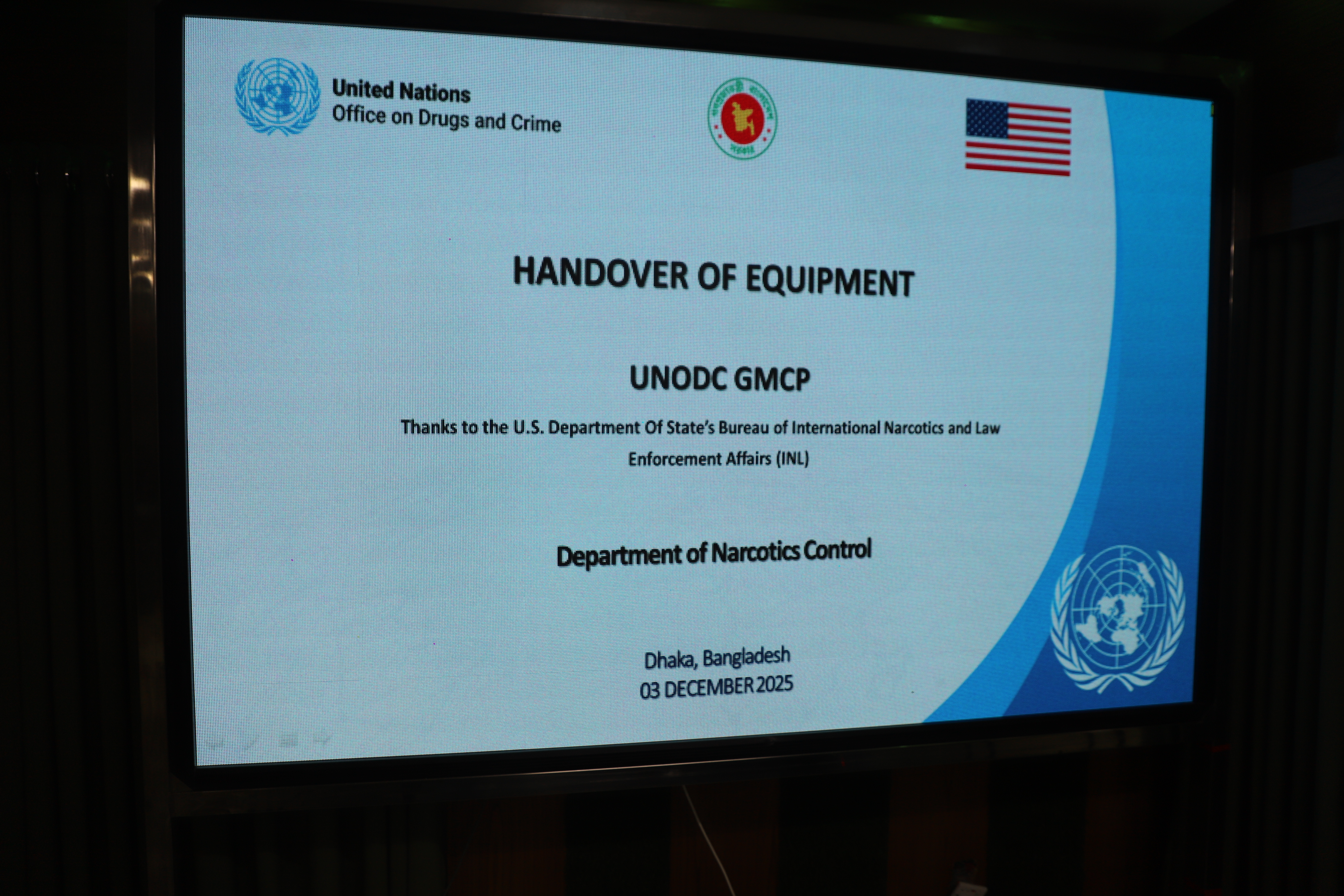 ০৩-১২-২০২৫ তারিখে অনুষ্ঠেয় Handover of Equipment UNODC GMCP অনুষ্ঠান